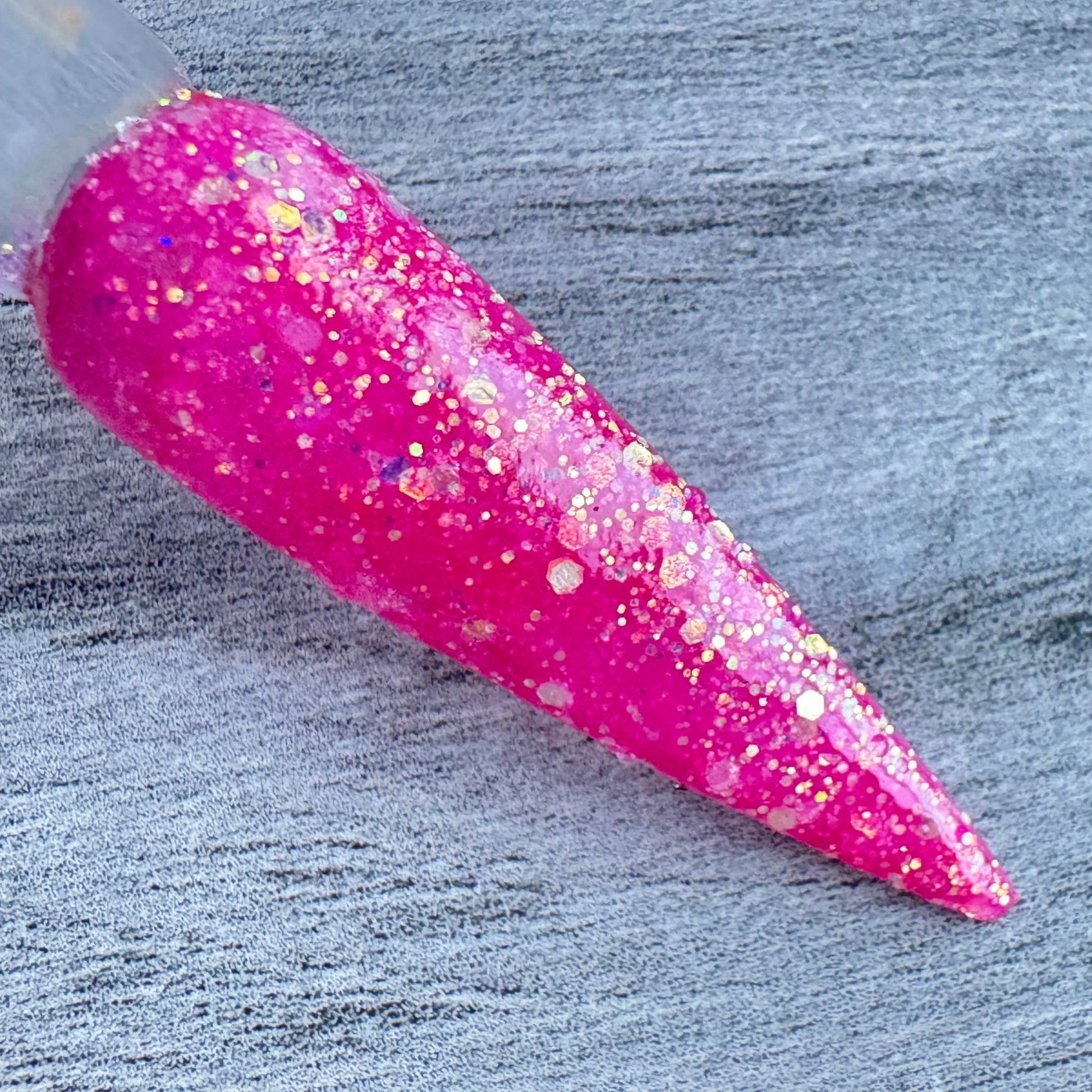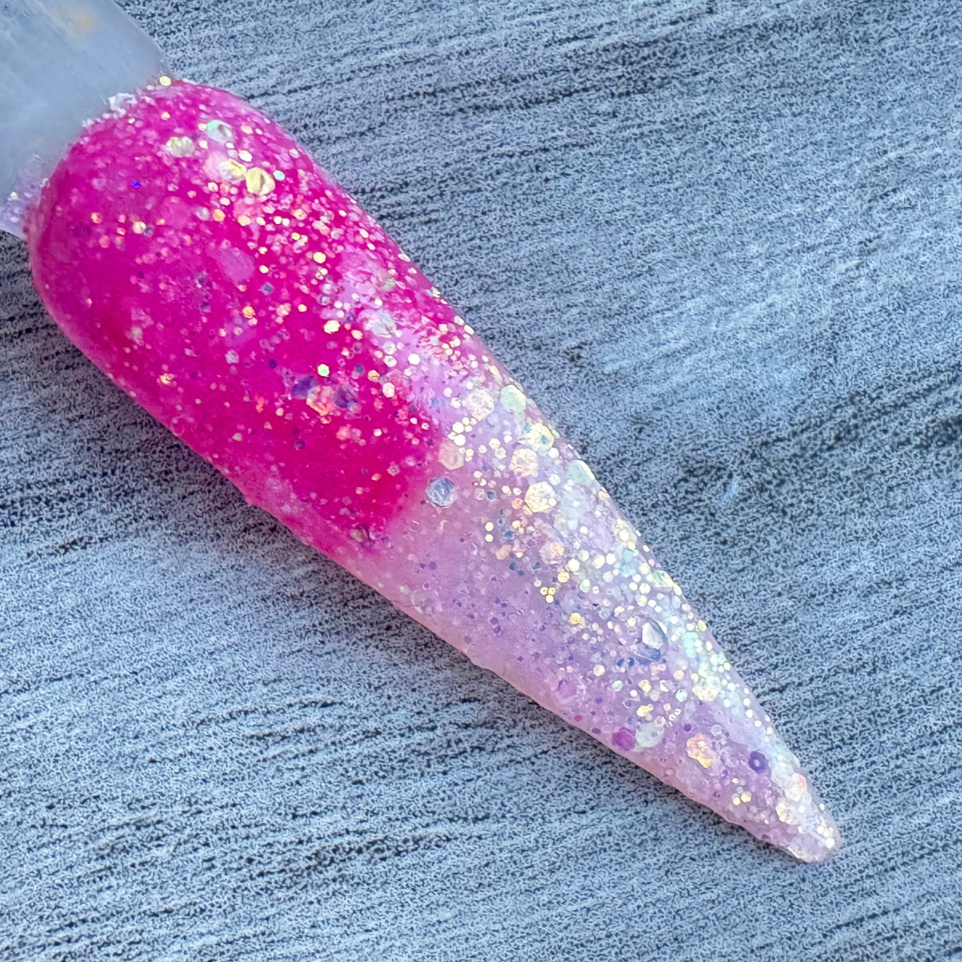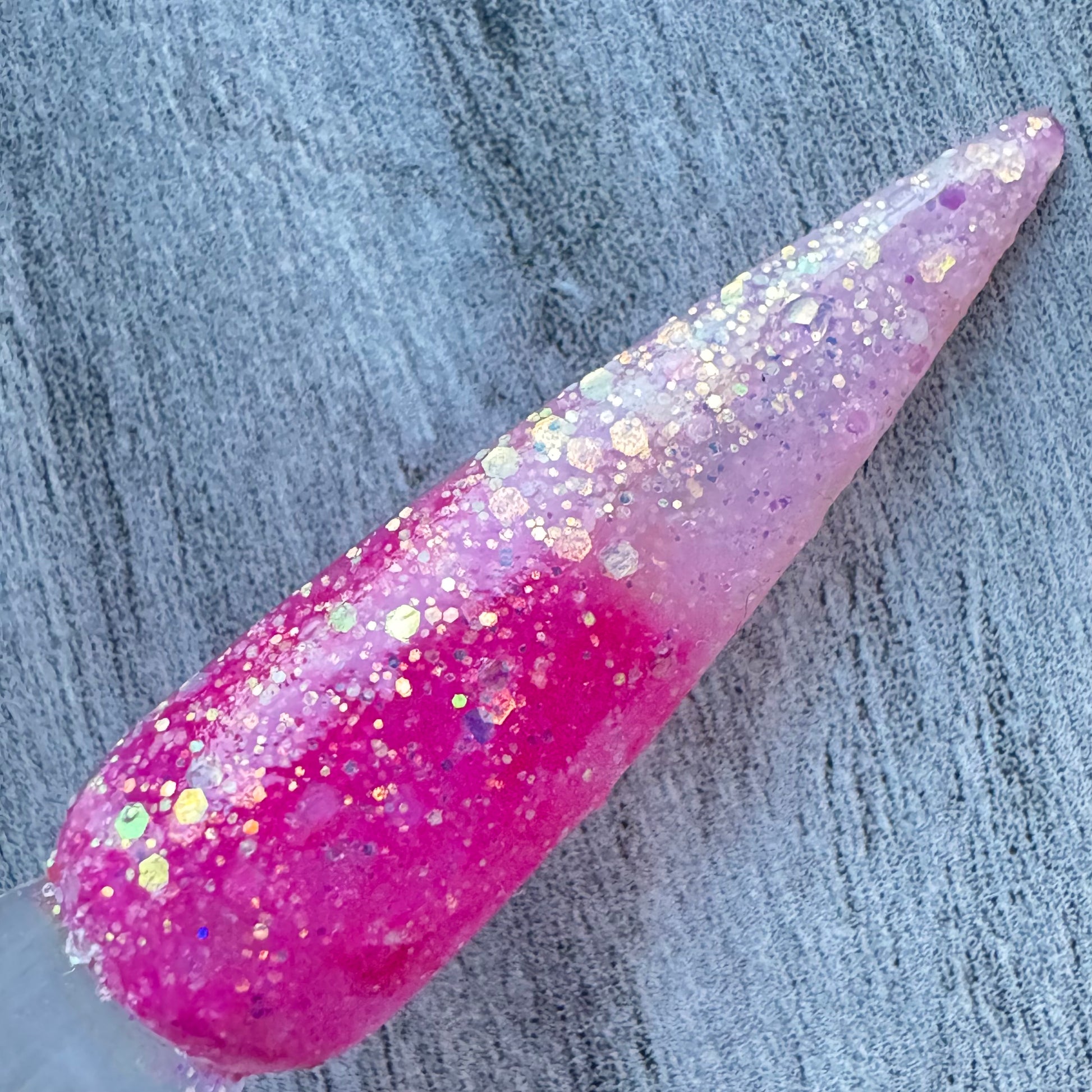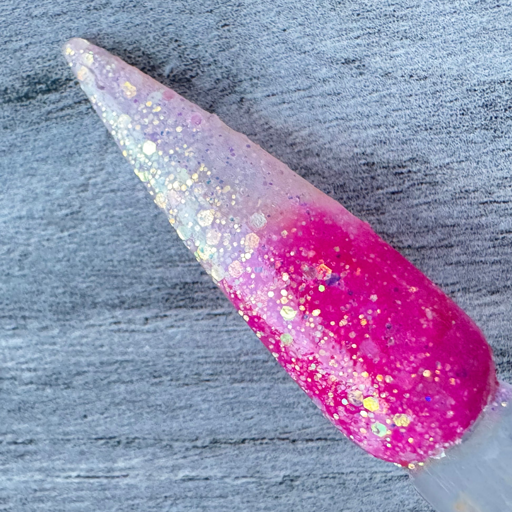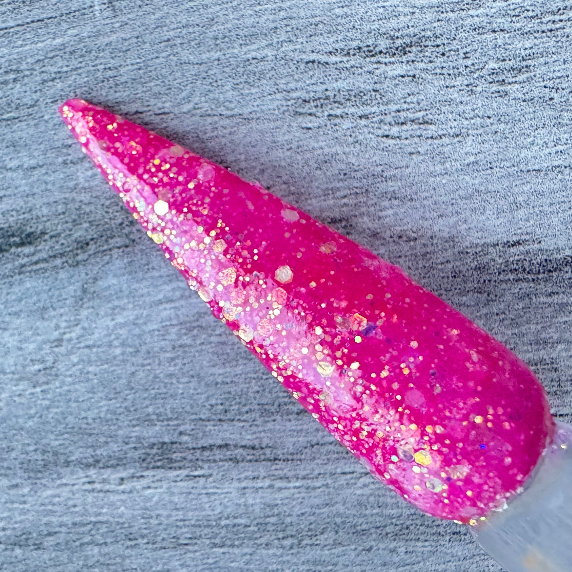 Love Spell is a sparkling thermal dip powder that fades from vibrant pink to a soft icy blush, perfect for playful Valentine’s nails with extra shine.